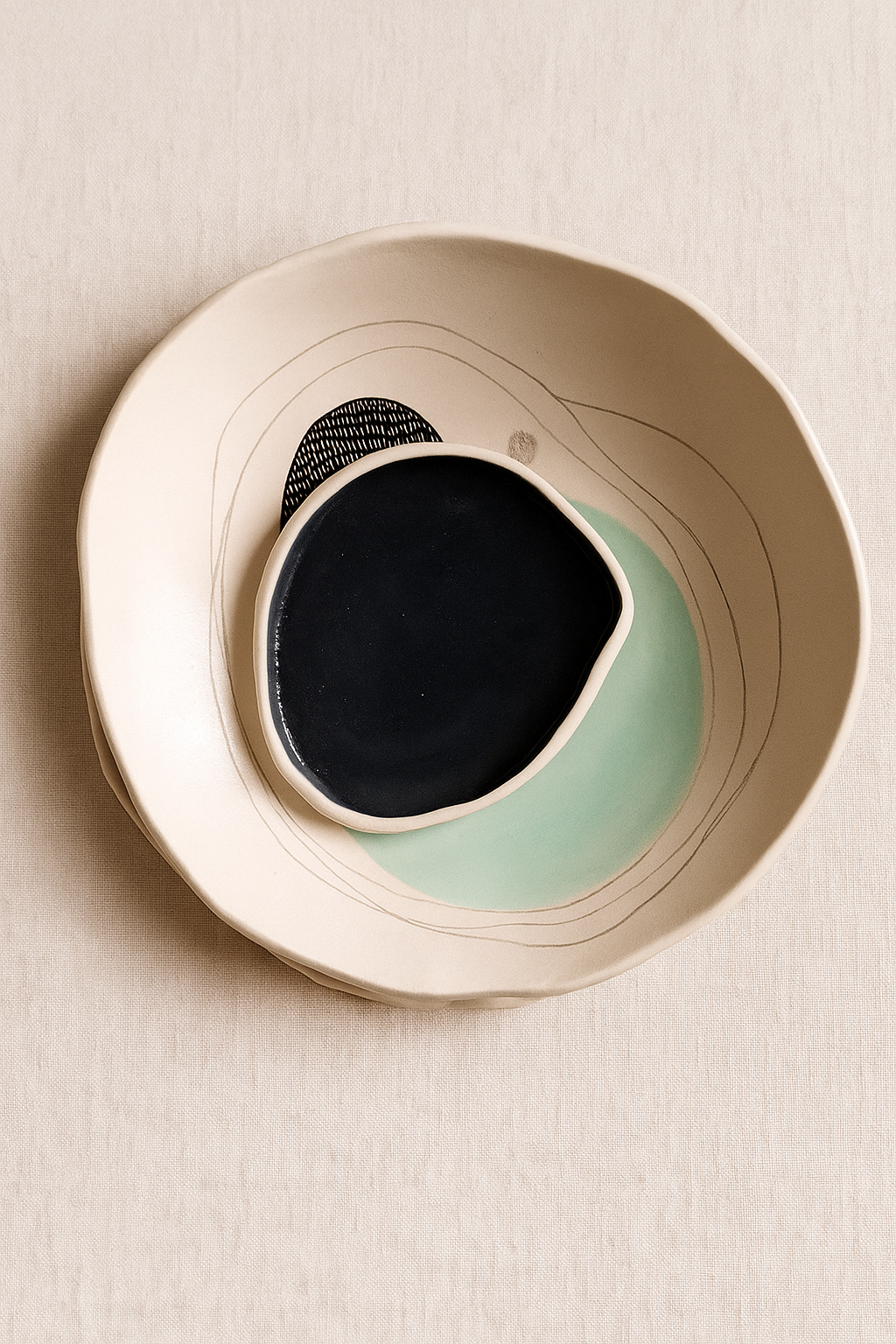 set di piatti in ceramica Boca Pottery: una collezione che unisce artigianato, materia naturale e poesia quotidiana, per trasformare ogni gesto a tavola in un rituale di bellezza e consapevolezza